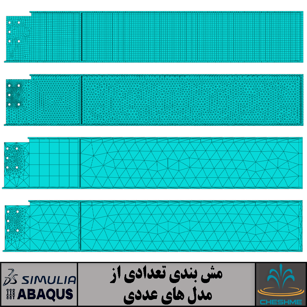 - فیلم آموزشی شامل صفر تا صد مدل سازی، تحلیل، مقایسه نتایج و بررسی سایز و نوع المان جهت مش بندی