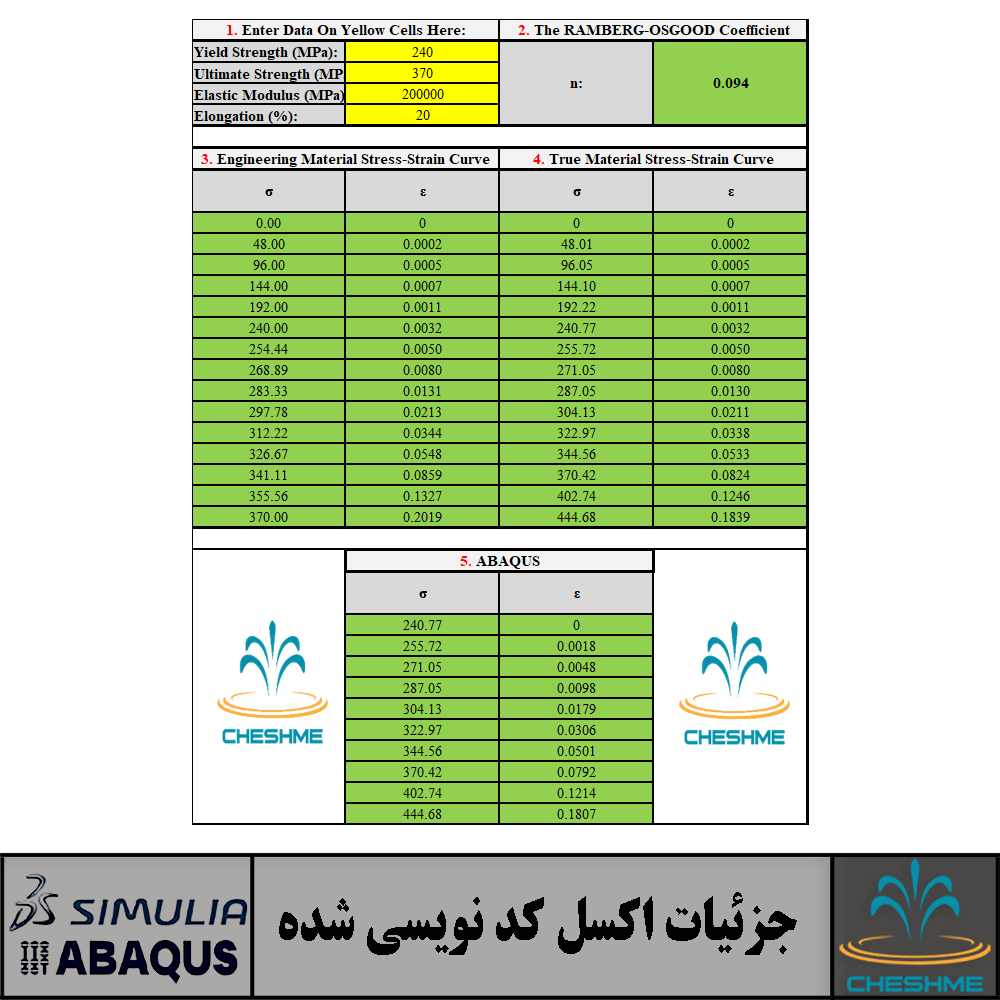 - فایل اکسل کد نویسی شده جهت ساخت منحنی تنش کرنش