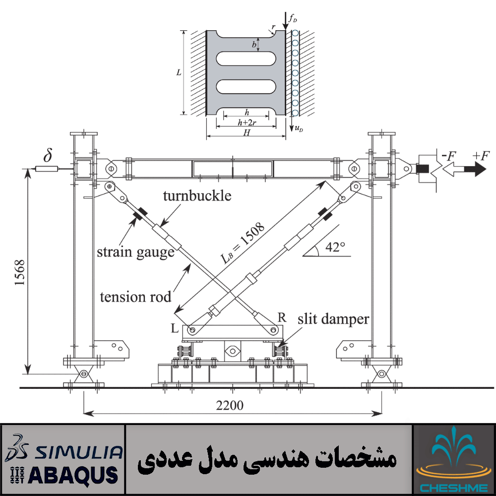 مشخصات هندسی مدل عددی سیستم مهاربند الاکلنگی مجهز به میراگر فولادی شیاردار