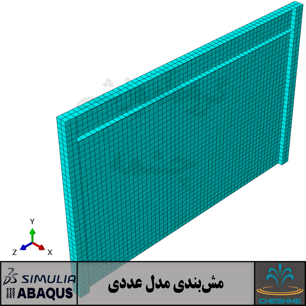در نهایت در شکل زیر مدل عددی دیوار برشی فولادی طراحی شده برای طبقه اول که در نرم افزار اجزا محدود آباکوس تحلیل شد نشان داده شده است.