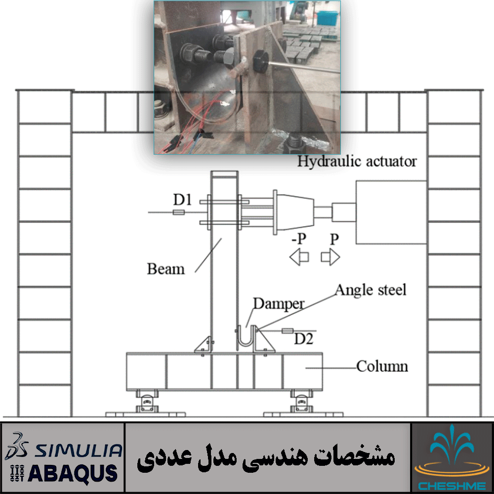 شکل های زیر به ترتیب مشخصات هندسی نمونه آزمایشگاهی میراگر تسلیمی فولادی U شکل و مدل شبیه سازی شده در آباکوس را نشان میدهد.